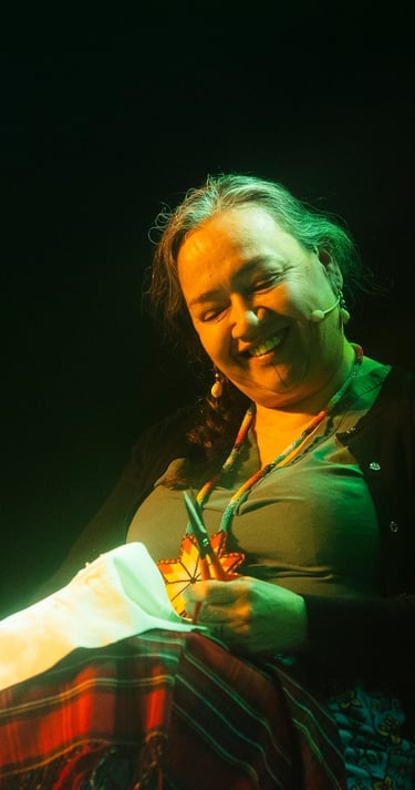 Productions Menuentakuan revient avec un spectacle puissant et rassembleur!`En 2026, Atanukan vous invite à une plongée dans l'univers de réciits personnels et communautaires, issus de la riche tradition orale innue.